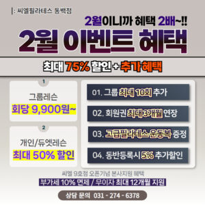 2월이니까 혜택은 2배로 준비했어요! 몸이 굳기 전, 봄이 오기 전 지금 시작하면 변화가 훨씬 빠르죠.